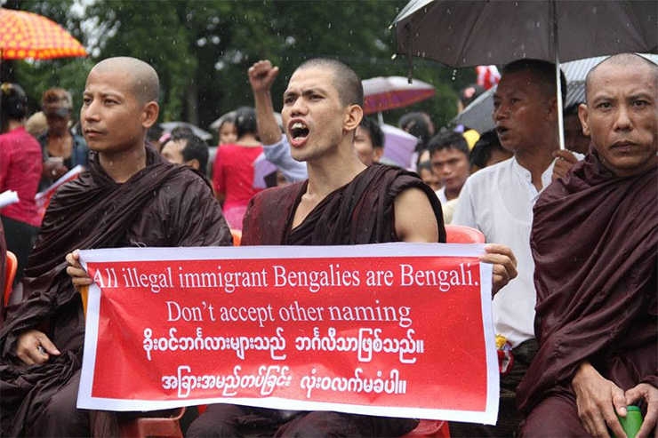 Myanmar nationalists staged a protest on 10 July with the objective of pressuring the government to use the term "Bengalis" to refer to the Muslim Rohingya community in the country, Channel News Asia reported on 11 July.