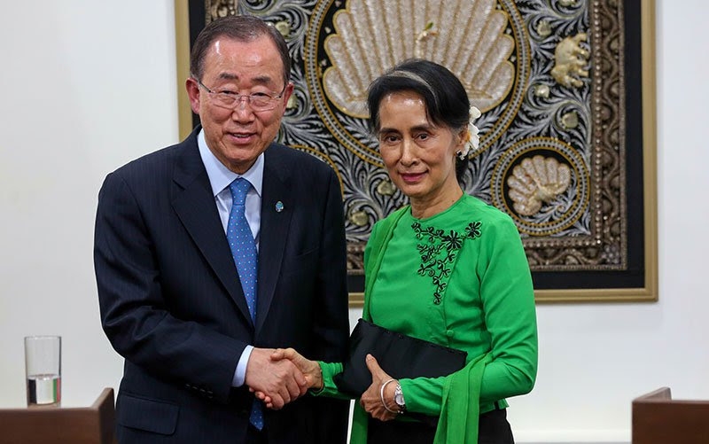 The United Nations has consistently supported Daw Aung San Suu Kyi’s struggle for democracy, through successive resolutions of the United Nations General Assembly; through the appointment of my Special Adviser, Mr. Vijay Nambiar; and also through the appointment of Special Rapporteur of the Human Rights Council, and through my own visits and engagement with Myanmar authorities.