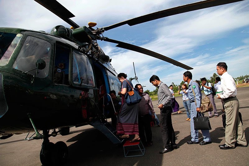 Renata Lok-Dessallien (left), United Nations Resident and Humanitarian Coordinator and UNDP Resident Representative in Myanmar, boards a military helicopter with diplomats on board to take off for a trip to Maungdaw town's fighting area at the Sittwe airport in Sittwe, Rakhine State, western Myanmar, 3 November. Foreign diplomats led by Renata, visit Sittwe and Maungdaw conflict area on 02 November and 03 November 2016 for the Human Rights accusations to the Muslims. Photo: Nyunt Win/EPA