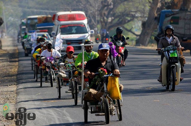 The group started their journey from Myitkyina on February 15 and they passed Mogaung, Mohnyin, Mawlu, Mawhan, Kathar, Hteechaint, Tagaung, Thabeitkyin, Letpanhla, Mandalay, Wandwin, Meiktila, Tatkone, and Naypyitaw.