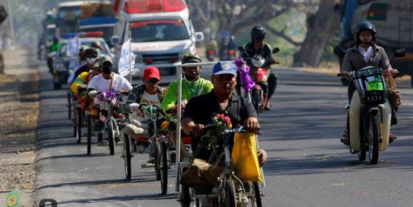 The ‘Wheel Chair’ peace movement consisting of differently abled and visually impaired persons stopped their movement yesterday after reaching Naypyitaw. The group called for a cessation of civil war in the country.