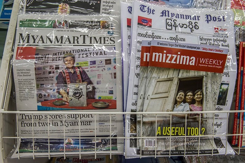 A Myanmar newspaper stand in Yangon. Photo: AFP