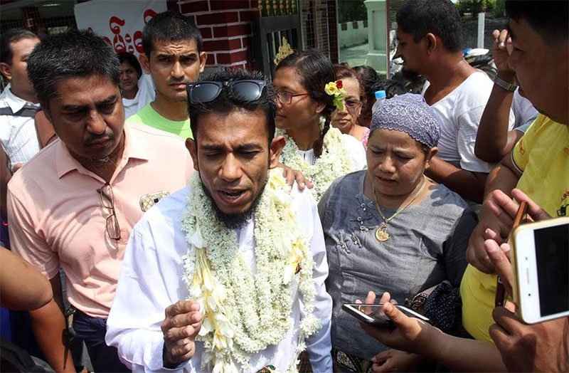 "I am very happy (but) they should not have been in prison in the first place," said Harry Myo Lin, director of human rights advocacy group The Seagull, who went down to meet them.
