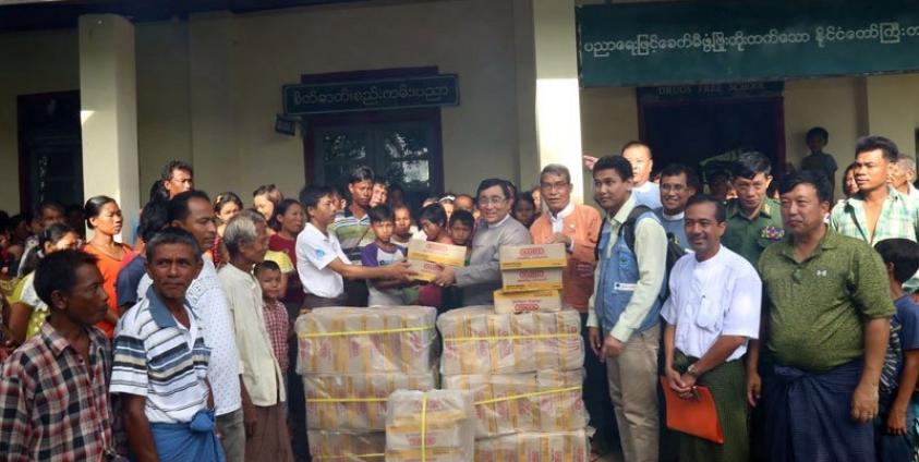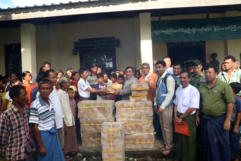 Union Minister for Social Welfare, Relief and Resettlement Dr. Win Myat Aye and Rakhine State Government Chief Minister Nyi Pu visited Maungdaw on August 27 and provided relief supplies to people fleeing from their homes, a news release said.