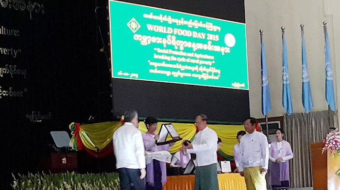 SEARCA Director Gil C. Saguiguit Jr. accepted the award presented by Myanmar President U Thein Sein at the country’s commemoration of World Food Day held on 16 October at Yezin Agricultural University (YAU), according to a press release.