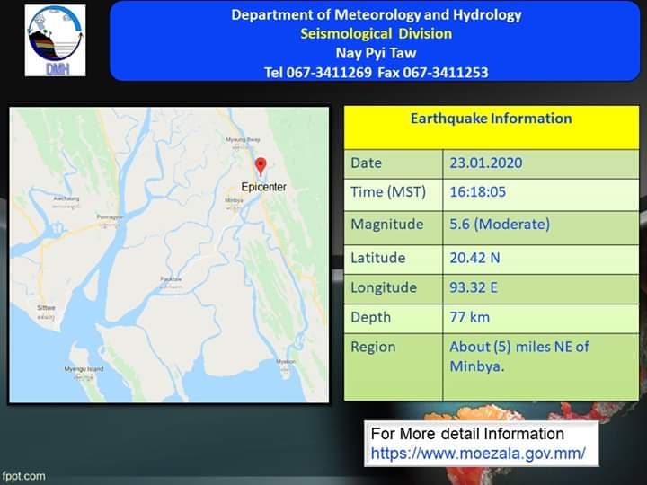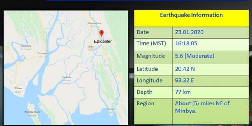 The epicenter is identified at around 5 miles northeast of Minbya locality in Arakan.