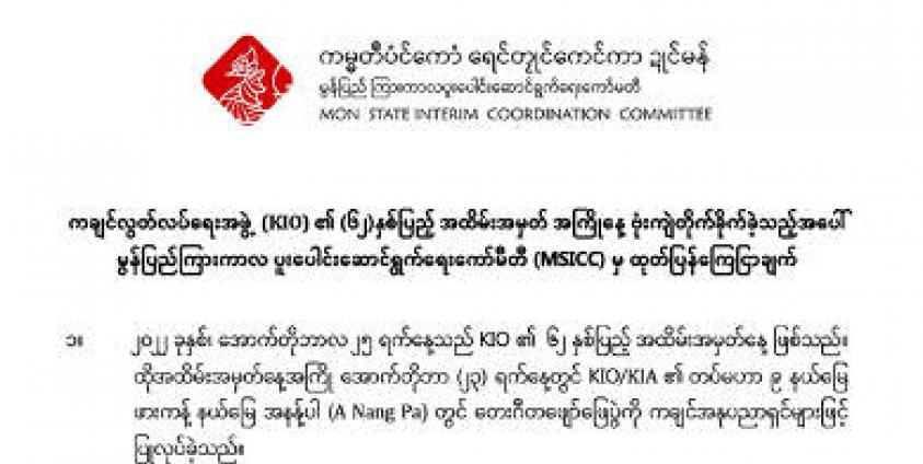 Mon Political and Armed Groups Strongly Condemned for the Kachin Independence Organization KIO Day Bombing