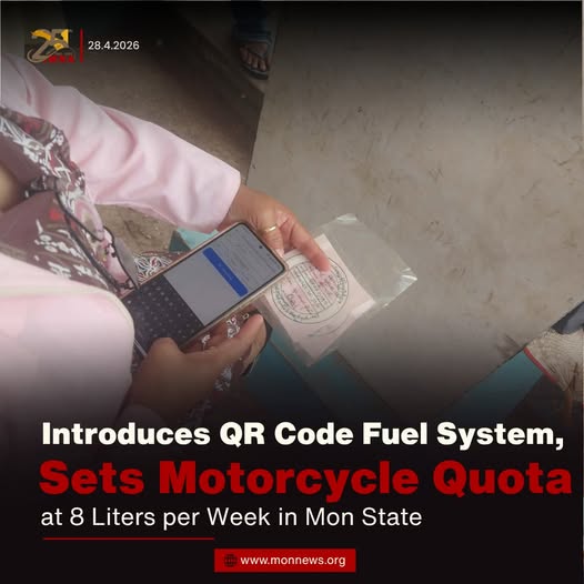 Mon State authorities have announced a new fuel distribution system using QR codes, under which motorcycles are allowed to purchase up to 8 liters of fuel per week based on vehicle type and engine capacity.