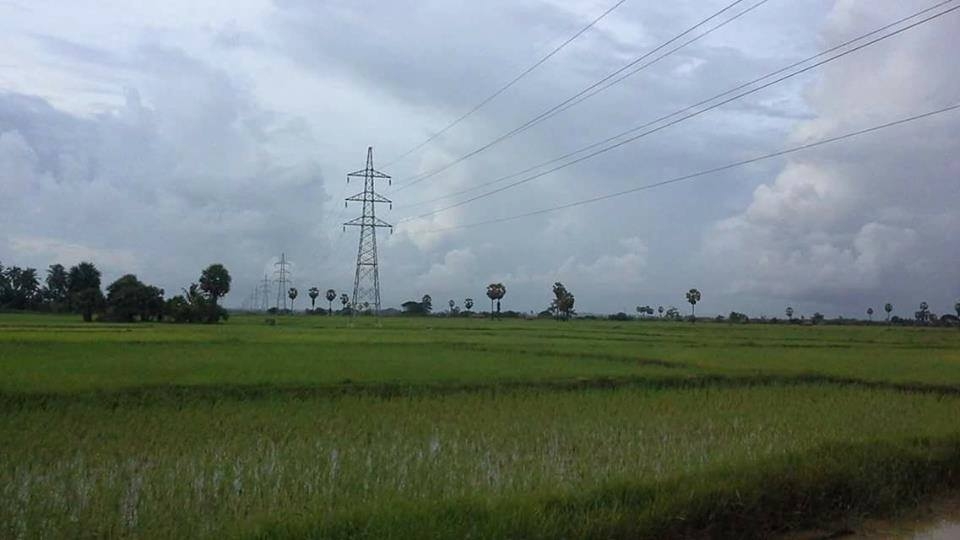 Electricity towers and lines seen across local paddy fields (Photo: Naiaung Naing)