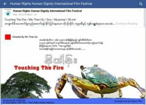 Min Than Oo, the director of Touching the Fire said: “At this film festival, there were seven awards, and the Aung San Suu Kyi award is the most prestigious of them all. Of the 67 films, 10 were documentaries, of the documentaries our film Touching the Fire won the award.”