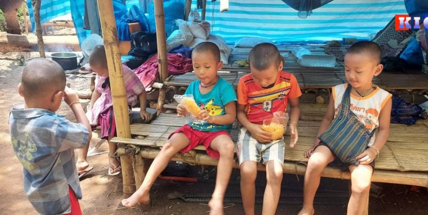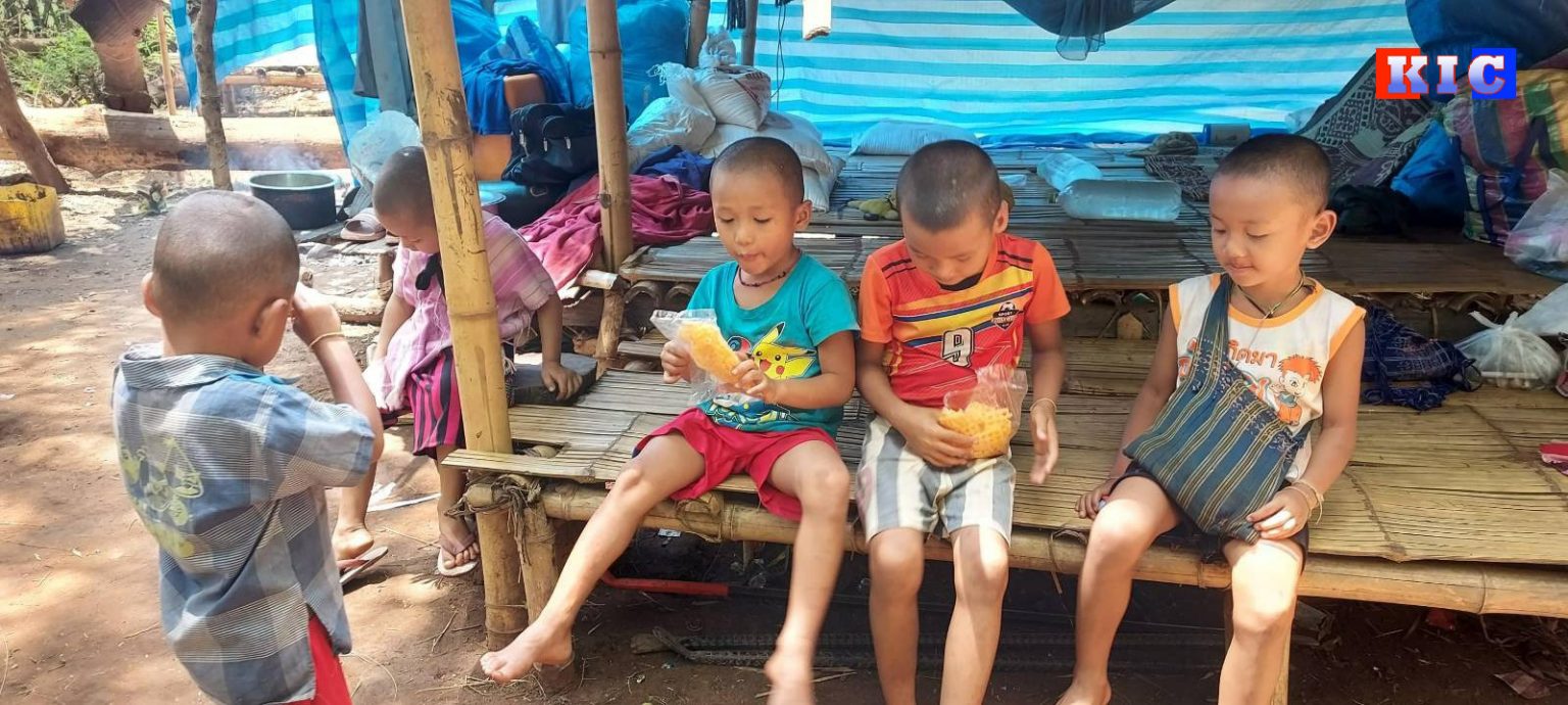 Ko Thet, a parent, who fled the war around his village said that more and more displaced children sheltering along the Thaung Yin River, south of Myawaddy, east of Dawna, had colds from the continuous rain.