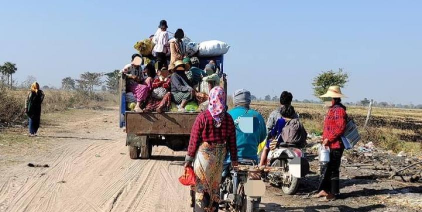 Starting from January 22, the Military Council column of around 150 soldiers invaded from Segyi and Zeintzun villages of Ye-U township to Nyaunghla and Weagyi villages of Tabayin township. And the people of 5 villages were forced to flee because Military Council troops were stationed in those villages and burning their houses, according to an official from Tabayin Township Internally Displaced Persons (IDP) Support Organization.