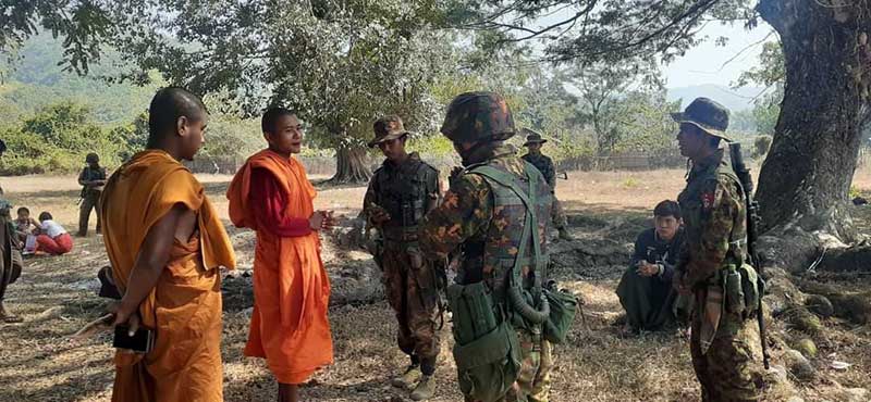 A group of servicemen from Light Infantry Division No. 66 arrived at Sa Nyin IDP camp on January 27 and told camp officials to relocate the temporary settlement to a safer site because it was close to an active conflict zone.