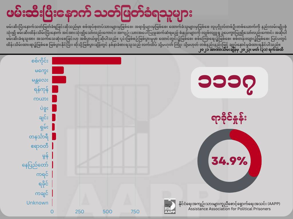 Out of the 17,075 people who were arrested by the Military Council following the coup, 5247 have been sentenced to prison terms across the country. As of March 31st, 2023, there are currently 108 individuals who have been sentenced to death, and are being held in prisons.