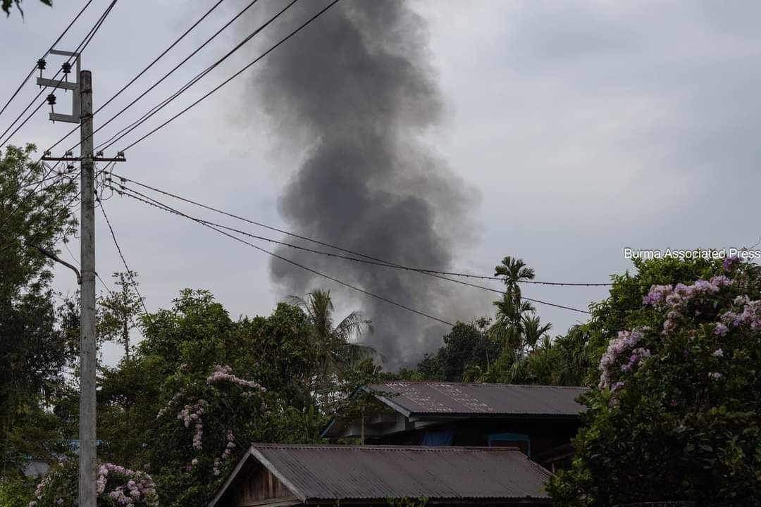 Some houses and a school in Chaung Taung and Thadaoo Wards were burnt down due to mortar shells attack by the military junta.
