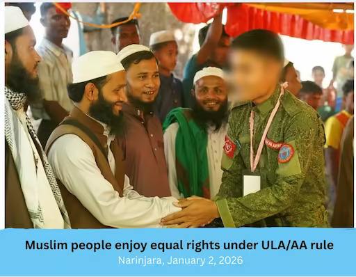 Khaing Lu Hla (Roma Mray) — Muslim religious leaders in the Arakan region of Myanmar expressed satisfaction that the religious minority people are now living with equal rights in their localities under the Arakan National League/Arakanese Army (ULA/AA) rule.