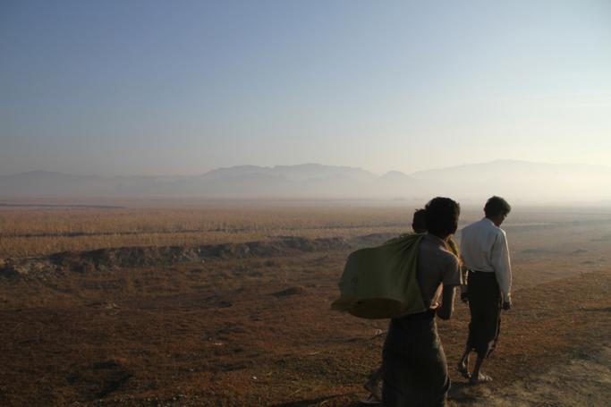 Three people walk along a road in Buthidaung township, Rakhine State. Photo: Richard Sargent/AFP