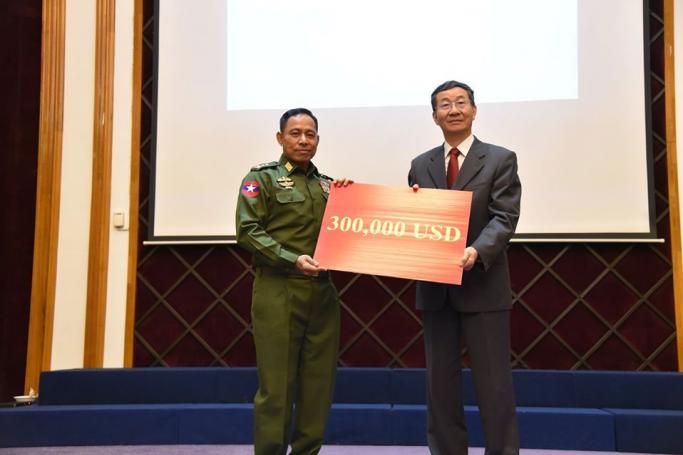 He was speaking at the ceremony to provide donations of US$ 300,000 each to Myanmar government’s Peace Commission (PC) and Joint Monitoring Committee (JMC).