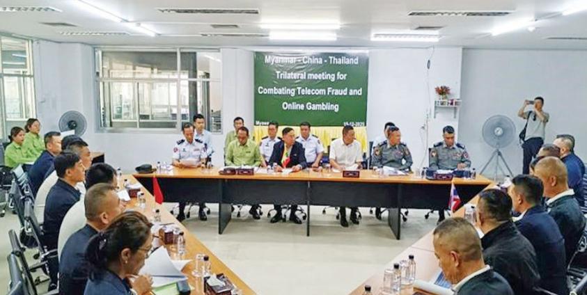 Delegations from Myanmar, China, and Thailand met in Myawaddy Town in Karen State on December 15 to strengthen efforts against telecom scam operations, locally known as Zhapian gangs, based in the border area near Thailand.