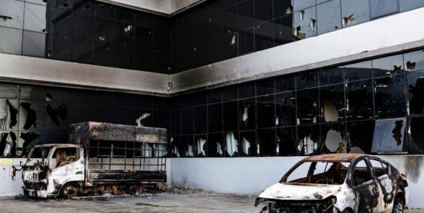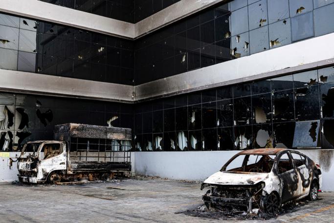 Photo: The aftermath of a fire at a Chinese-owned garment factory is pictured in the Hlaing Tharyar industry zone in Yangon on March 21, 2021. Photo: AFP