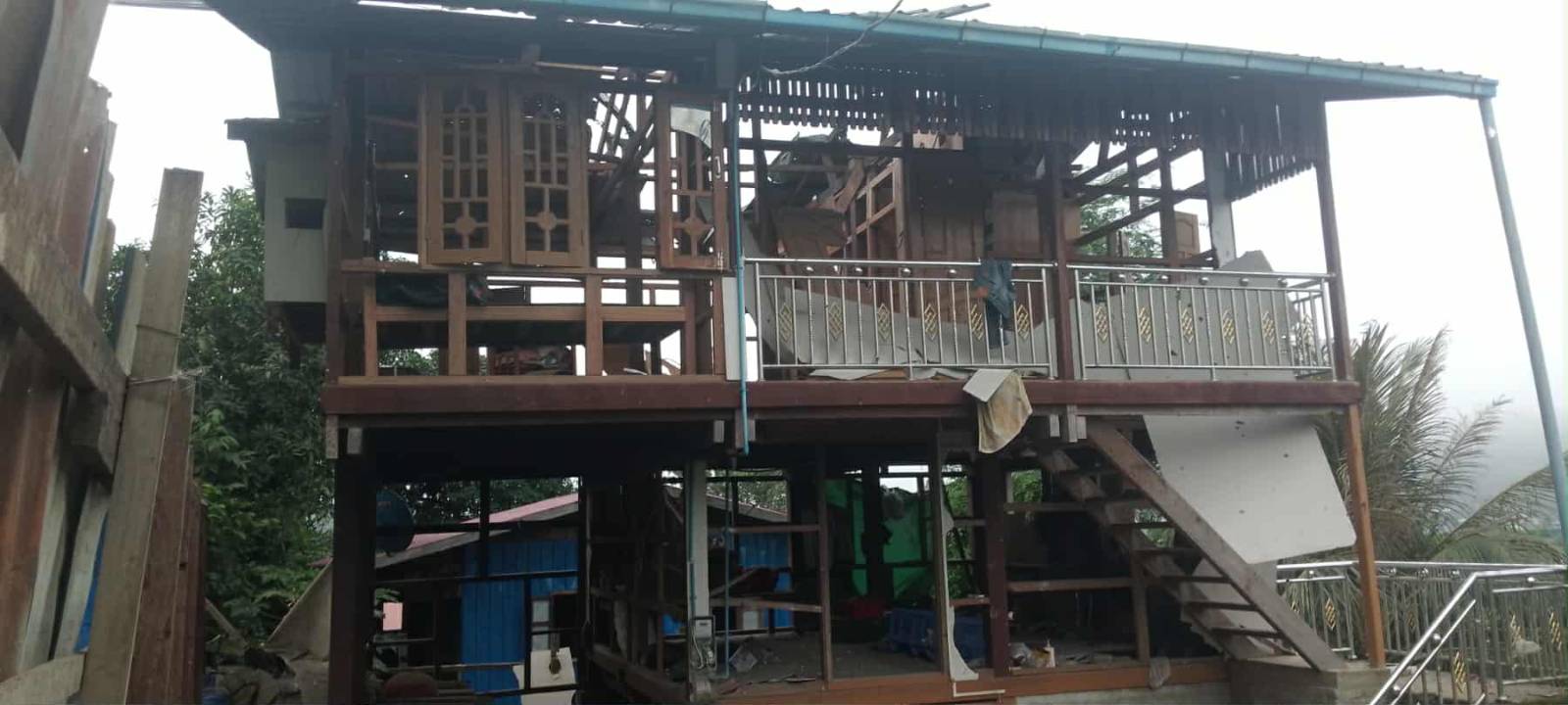 The shelling destroyed two houses and a school in Seikmu Ward 3, as well as five houses in Bazan Chaung Ward.