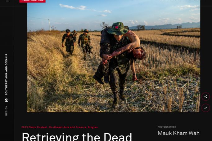 Myanmar photographer Mauk Kham Wah was announced a World Press Photo 2023 regional award winner on 29 March. His photo “Retrieving the Dead” that won the award was taken in Moebye, Karenni State on 21 February 2022.