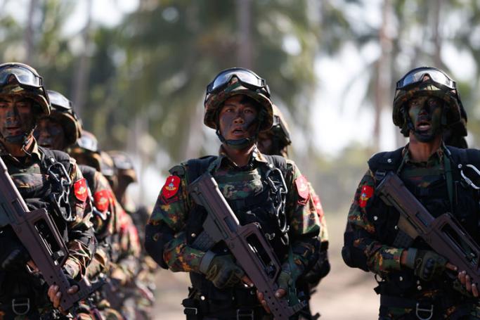 Brigadier General Myint Shwe, commander of Light Infantry Division 101, and several officers...