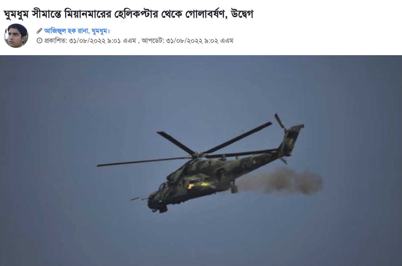 Ghumdhum union chairman Md Jahangir Aziz Chawdhury confirmed that the Myanmar military helicopter was seen flying inside Bangladesh from 11 am to 2 pm.