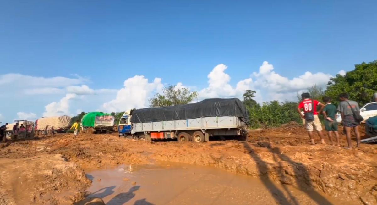 A passenger who travelled along the road said to MNJ: “It is now impossible to predict how long it will take to travel from Tanai to Myitkyina. The journey usually takes 3 to 5 days, with passengers forced to spend nights on the road with no other option. Despite the arrival of winter, the rains have not stopped, and the road conditions remain poor. In some areas, the muddy water is knee-high.”