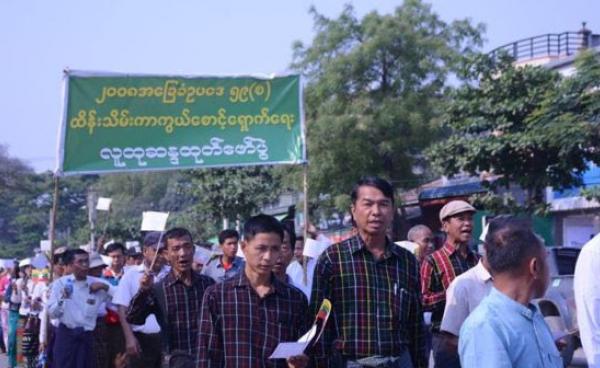 The land was taken in 1990 and unused portions are being sold block by block by the Tatmadaw, locals say. More than 200 farmers marched from a train...