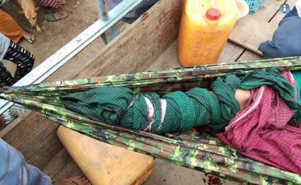 Myo Thiri Kyaw — A woman was killed and a boy injured when gunfire riddled a tent set up for an ordination ceremony in Ponnagyun Township’s Latmasait...