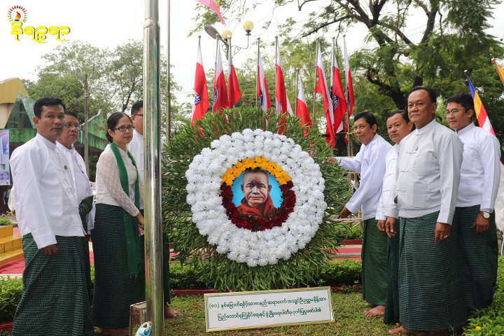 In the Arakanese capital city of Sittwe, a large number of people representing government departments, political parties, socio-religious organizations, student & women communities etc marched to U Ottama memorial monument at Ottama garden to pay tributes to the monk. The banners and wreaths, carried by the participants, were in memory of U Ottama’s immense sacrifice for Myanmar’s independence.
