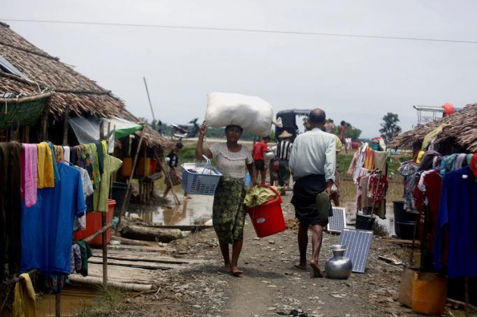 A woman carries a bag as she walks near the Tin Nyo village's internally displaced persons (IDP) shelter in Mrauk U township area, Rakhine State, western Myanmar. Photo: Nyunt Win/EPA