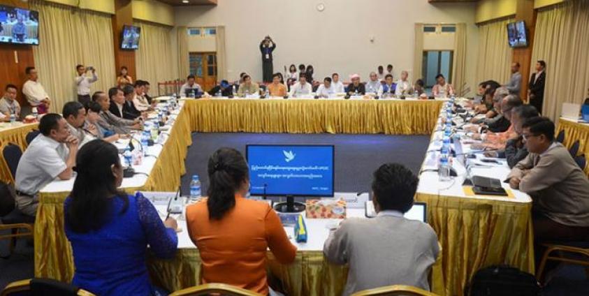 The two-day meeting is at the National Reconciliation and Peace Centre with 10 representatives from the government, 9 from the group of EAOs, and 10 from the group of political parties in attendance.