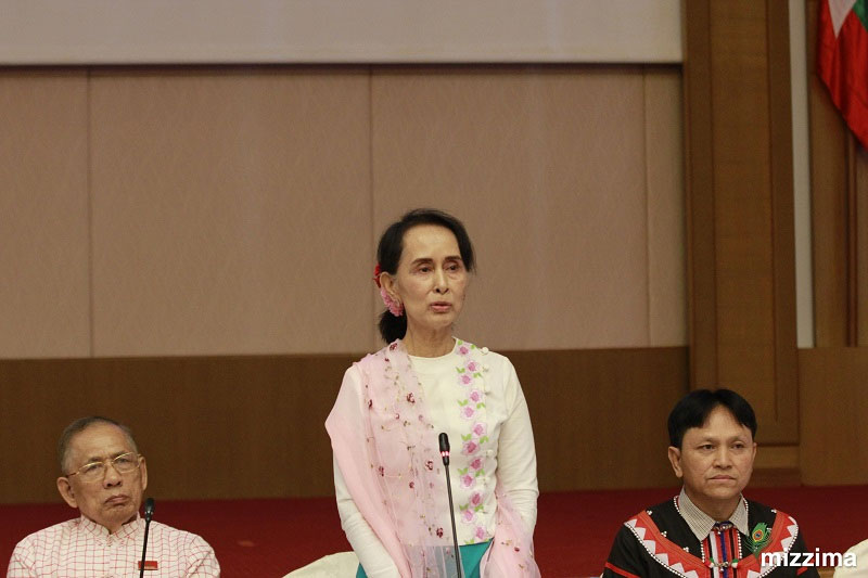 State Counselor Daw Aung San Suu Kyi talks to media during their press briefing with New Mon State Party and Lahu Democratic Union, at National Reconciliation and Peace Centre in Nay Pyi Taw on 23 January 2018. Photo: Min Min/Mizzima