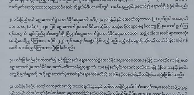 A copy of a letter allegedly signed by the chair of the National League for Democracy (NLD) for Thangtlang Township, involving corruption during the recent general election, has spread on social media.
