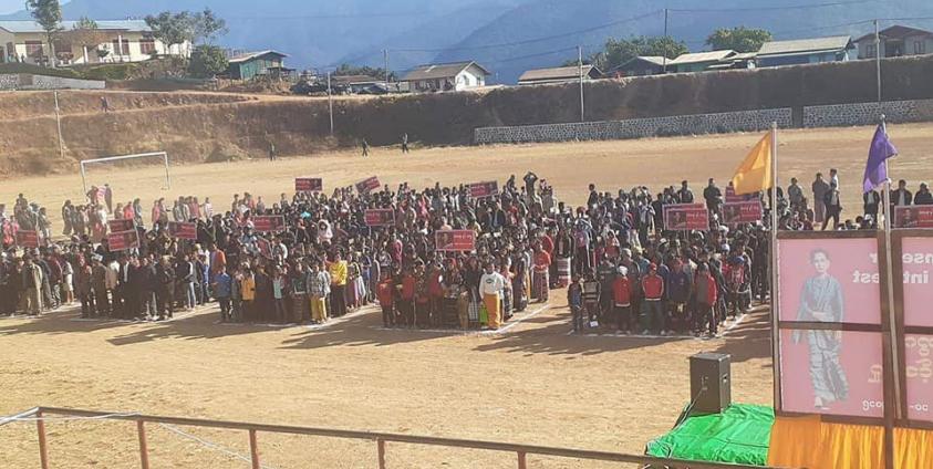 The events in Hakha, Falam, Mindat and Matupi towns were all held at 9:00 a.m. on December 10, and were attended by government staff, students, and members of the ruling National League for Democracy (NLD) party. Participants held signs stating that they “stand with” Aung San Suu Kyi.