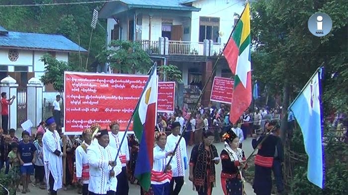 About 500 ethnic Lawngwaw, Lachid, and Ngawchang people from Chipwe Township marched in protest in Chipwe from 7 to 9 am on 15 October calling for the LNDP to retract its demand for a Lisu self-administered zone, according to Daw Ji Khaw Myaw, a member of the Lachid Literature and Culture Committee.
