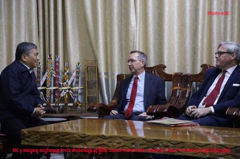 The U.S. Ambassador to Myanmar Scot Marciel and his UK counterpart Andrew Patrick also met with the civil society organizations (CSOs), Peace-talk Creation Group (PCG) and the UN agencies. During their meetings, they talked about the peace process and refugee concerns and also mentioned that they would always support for the peace in the country, according to Rev. Dr. Hkalam Samson, the General Secretary of KBC.