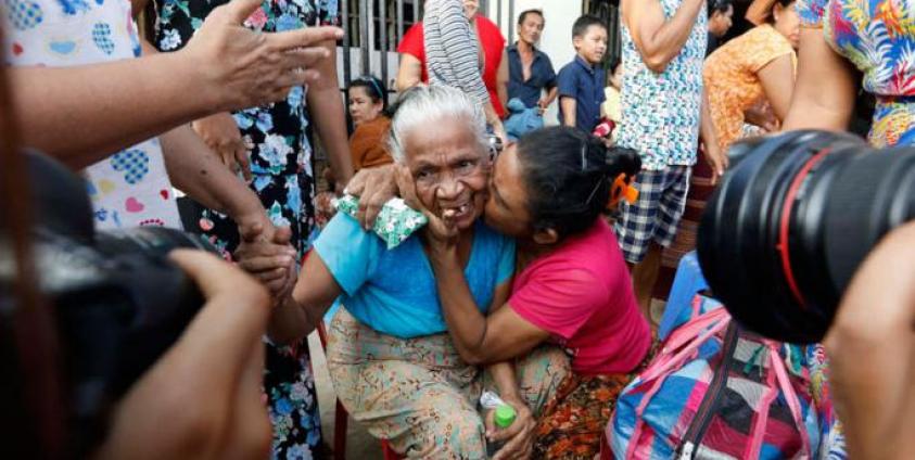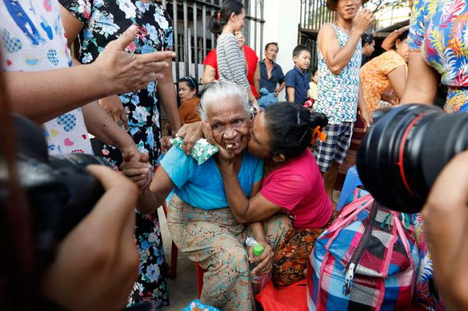 Prisoners reunite with family members outside the Insein Prison in Yangon, Myanmar, 17 April 2019. Photo: Nyein Chan Naing/EPA