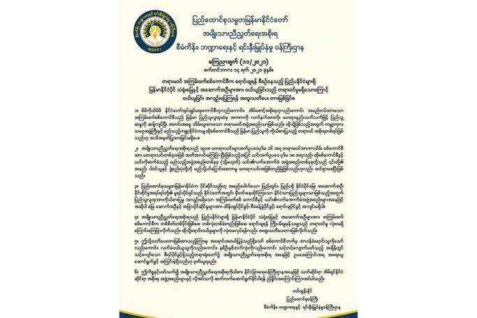 The NUG said that all attempts by the military council, which does not represent the people, to sell whole or part of embassy land and buildings owned by Myanmar citizens, were completely illegal and that it was strictly forbidden to do so.