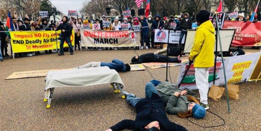People of all ethnicities from Myanmar demonstrated in front of the White House in Washington DC on 25 February.