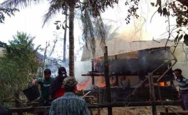 Several houses were destroyed by fires following airstrikes by three junta military helicopters in Moetar Gyi village, Kathar township, Sagaing...
