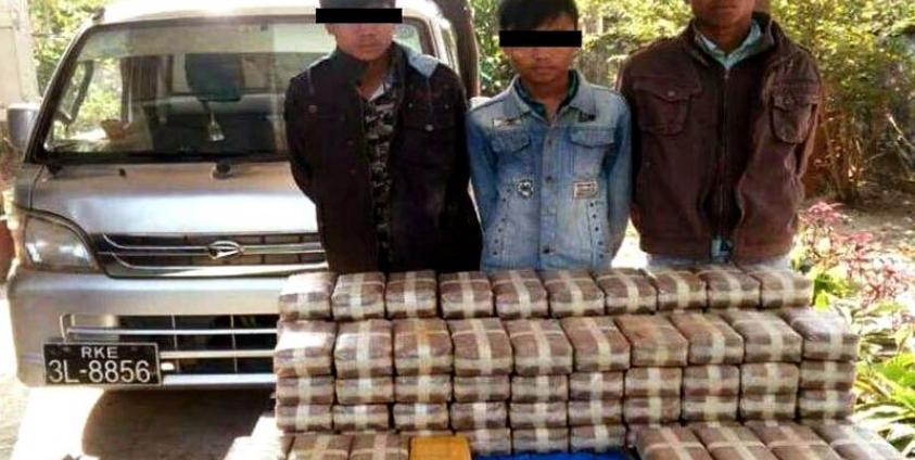 When the police challenged them, they dropped the packages and ran away. The police seized 955,500 methamphetamine tablets with brand name WY worth about 1,911 million kyats street price along with light truck driver Win Tin (18), helper Kyaw Kyaw Lin (16) and a youth called Maung Thein (19).