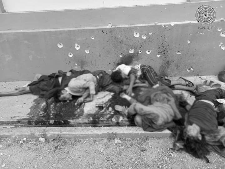 “They made them line up in front of the monastery and brutally shot them all, including the monks,” said a KNDF news and information official.
