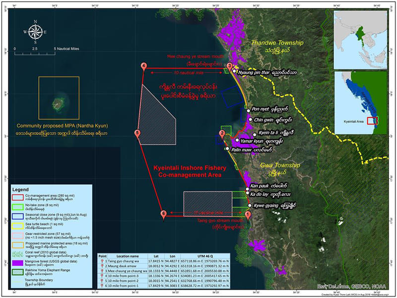 The Forest Department, WCS Myanmar and the Rakhine Coastal Region Conservation Association (RCA) are working together to establish marine protected areas on the islands of Gwa, Nantha and Kyun Nantha in Arakan State.