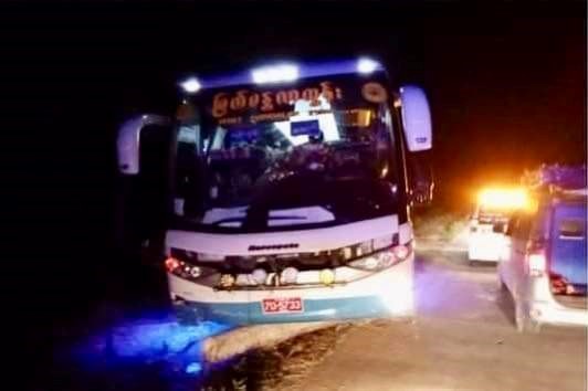 A bus operated by Myat Mandalar Tun Express company was attacked with gunfire while traveling on the Myeik-Kawthaung Road in Tanintharyi Region, killing a woman and a child, locals said.