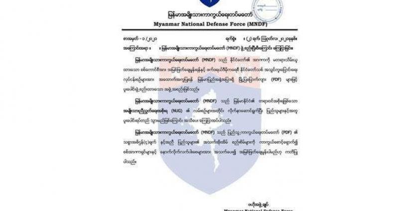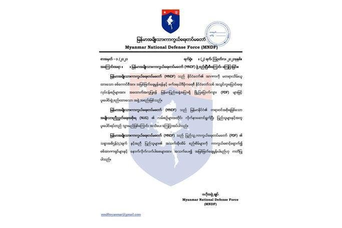 It announced that the MNDF will abide by the guidelines of the National Unity Government (NUG) and stand with the people.