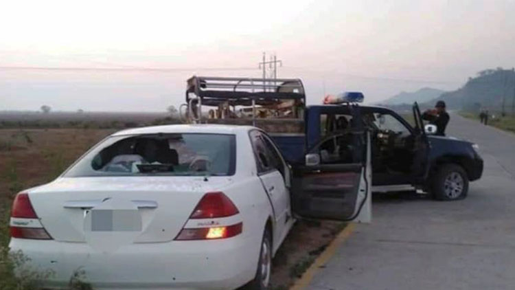 The police convoy left Kyauktaw Township and on the way to Sittwe Township, but struck two explosive devices in Ponnagyun Township; the first was near Pet Khwet village and the second was near Pyaing Taw village.