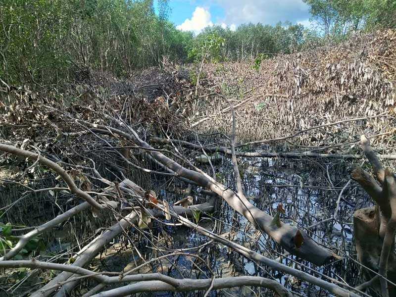 “In the past 20 days, 360 chickens died in one day due to the intense heat,” he added. “I told the workers to cut down the mangroves a bit to allow air into the poultry farm. I have no intention of destroying the mangrove forest. The poultry farm also needs to be able to withstand wind and waves. I didn’t seek permission from the village administrator to cut down the mangroves.”